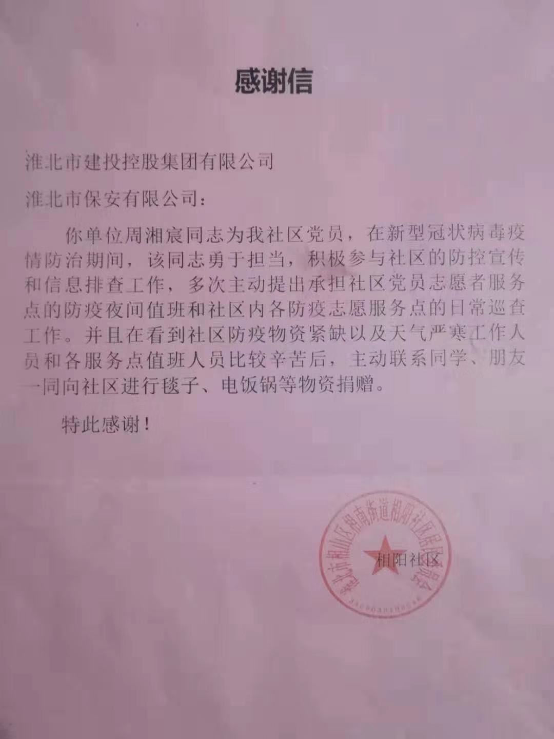 黨員“三報(bào)道”期間,白天工作時(shí)間在單位值班,統(tǒng)籌春節(jié)假期和延期上班期間的各項(xiàng)日常運(yùn)作工作,下班后積極幫助居住地社區(qū)逐樓逐戶進(jìn)行新冠病毒防控宣傳、挨家挨戶開展返淮人員信息排查;并且?guī)е瑸辄h員的妻子一同第一時(shí)間向社區(qū)報(bào)到,多次向社區(qū)主動(dòng)提出承擔(dān)夜間防疫責(zé)任,執(zhí)行黨員志愿服務(wù)點(diǎn)夜間值守和日常巡查工作,成為奔赴抗疫前線的夫妻檔“逆行者”。