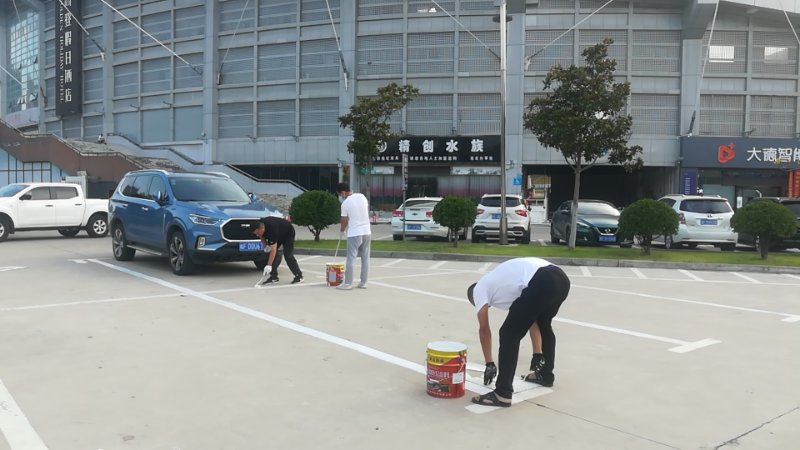 助力創(chuàng)建全國文明城市,城泊公司員工用汗水施劃停車泊位線