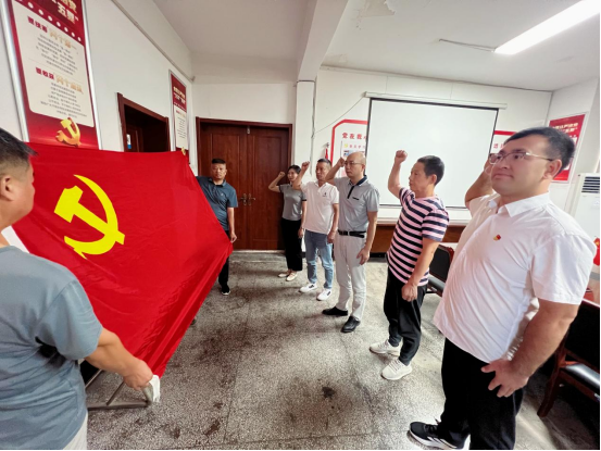 活動開始,全體人員集中觀看紀念中國人民抗日戰(zhàn)爭暨世界反法西斯戰(zhàn)爭勝利80周年大會。觀看過程中,大家保持安靜肅穆,認真感受閱兵儀式所展現出的國家強大軍事力量和軍人昂揚風貌,深刻體會到其背后蘊含的深厚愛國情懷與民族精神。整齊劃一的受閱方陣、先進精良的武器裝備,讓全體黨員心靈受到極大震撼,自豪感油然而生。閱兵儀式結束后,全體黨員面向鮮紅的黨旗,莊嚴地重溫入黨誓詞。“我志愿加入中國共產黨,擁護黨的綱領……” 鏗鏘有力的誓言在會議室久久回蕩,字字千鈞,叩擊著每位黨員的心靈。這不僅是對初心使命的回溯,更是一次精神的淬煉與升華。